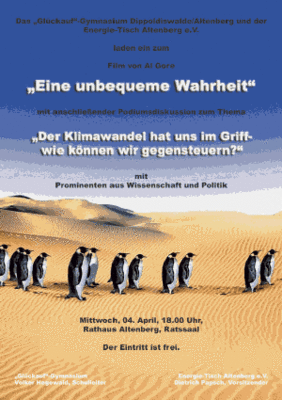 der vor wenigen Tagen mit 2 Oscars ausgezeichnete Al Gore-Film "Eine unbequeme Wahrheit" zur Aufführung.