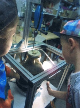 Die Vorschulkinder vom Freiberger Kindergarten "Campuszwerge" besichtigten am 26.06.2015 eine Labor-Biogasanlage an der TU Freiberg. Sie konnten Mikroskopaufnahmen der Methanbakterien sehen und lernen, dass die kleinen Helfer fast alles Essen - auch Süßes. Jeder konnte ein Gummibärchen den Bakterien zu futtern geben und die Gasbildung durch kräftiges Rühren unterstützen.
