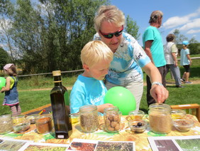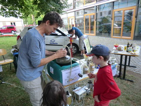 Pflanzenöle als Kraftstoff - Rapsölpresse für die Kinder zum Selberpressen und Verkostung verschiedener Pflanzenöle; Vorstellung eines Car-Sharing-Modells mit Rapsöl betriebenem PKW